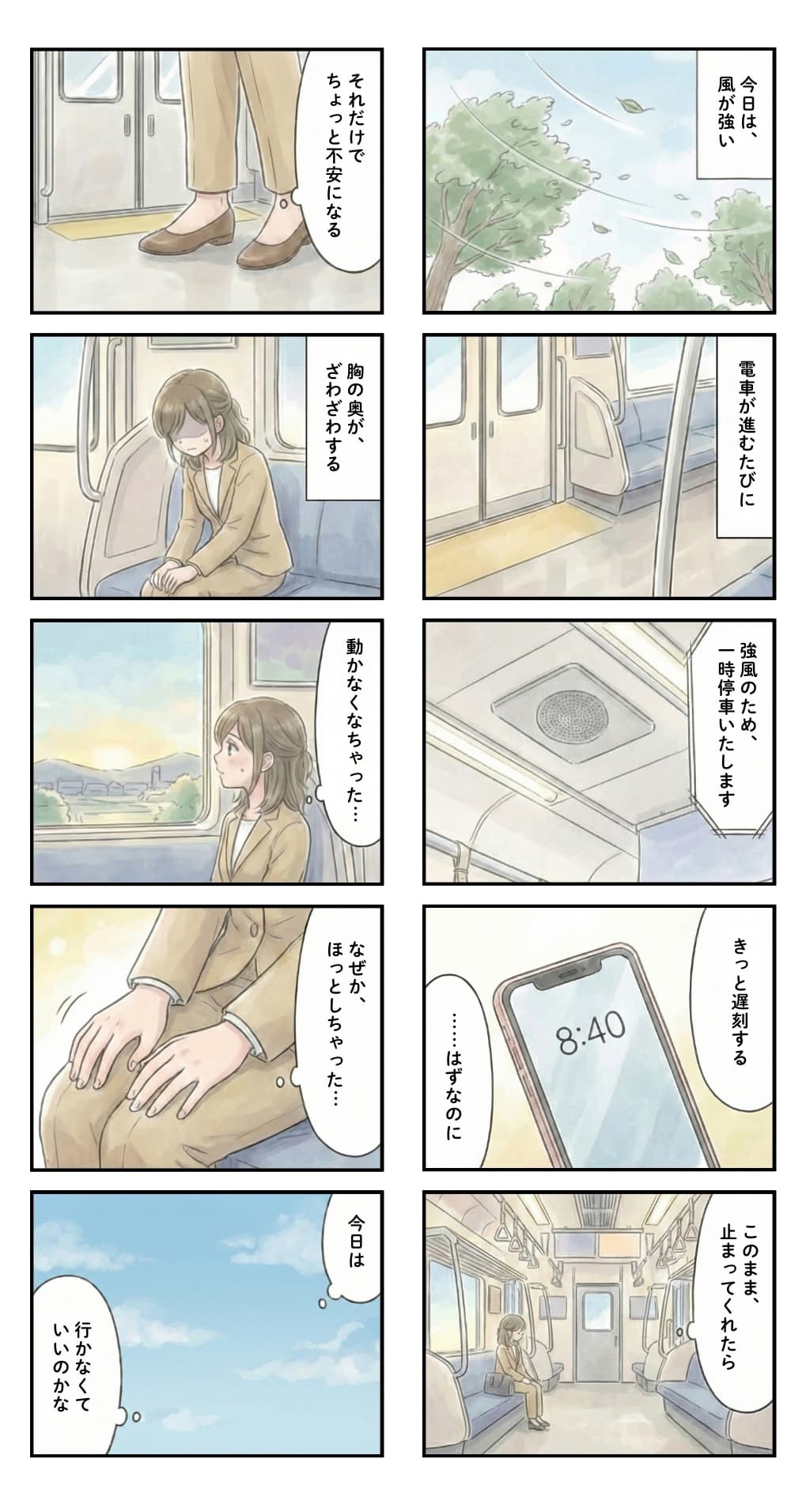 止まった電車の中で