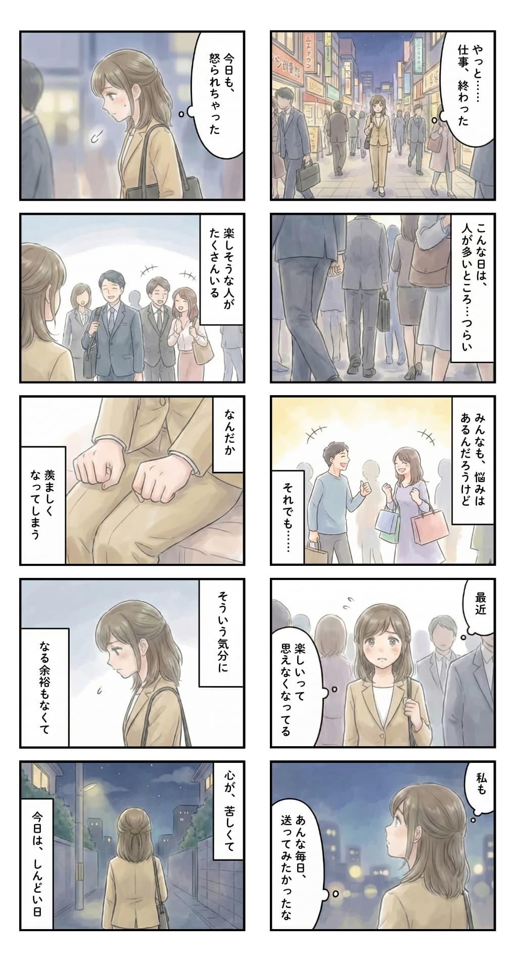 ここには、人生の寄り道の途中でふと浮かんだ気持ちや、胸の奥にしまったままの気持ちを、漫画と短い言葉でそっと残しています。