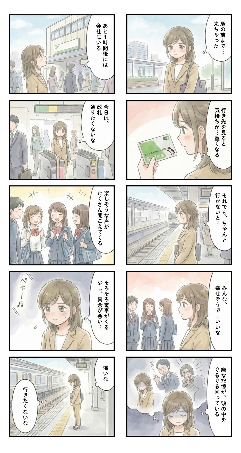 ここには、人生の寄り道の途中でふと浮かんだ気持ちや、胸の奥にしまったままの気持ちを、漫画と短い言葉でそっと残しています。
